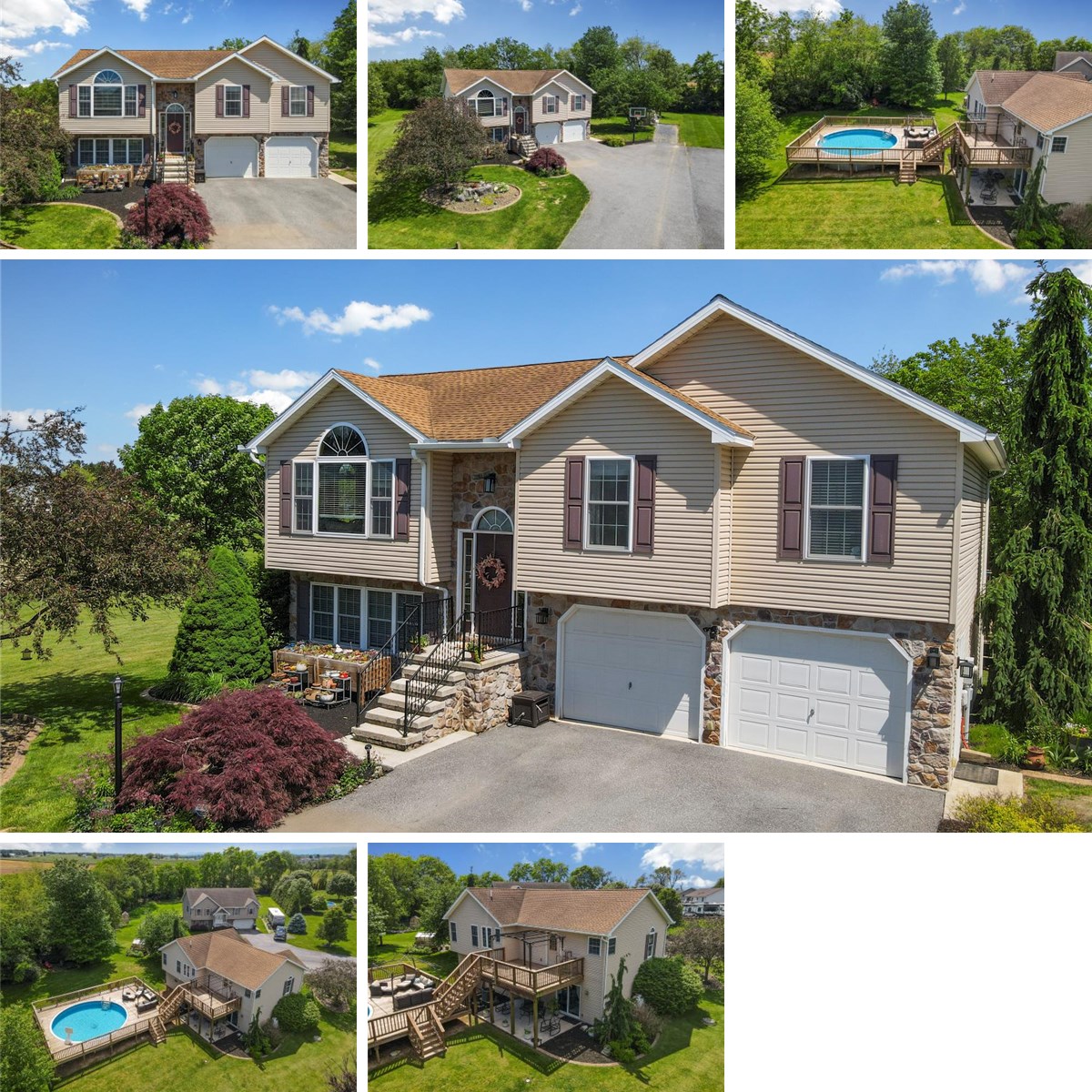 Welcome to 1136 Ashton Drive, nestled on a spacious 0.75-acre lot in a peaceful Shippensburg neighborhood. Surrounded by mature landscaping and trees, this beautifully maintained split-foyer home offers 3 bedrooms and 2.5 bathrooms, blending comfort, privacy, and functionality. Step into the upper level to find a large, sun-filled living room with vaulted pine board ceilings and a striking bay window that fills the space with natural light. The kitchen features updated stainless steel appliances and flows seamlessly into the dining area, where you’ll find access to an expansive two-tier deck. Designed for both relaxation and entertainment, the deck overlooks a built-in saltwater pool—affordable, low-maintenance, and perfectly nestled against a backdrop of trees for a secluded outdoor retreat. The spacious primary suite includes a private full bath with a luxurious soaking tub. The lower level offers additional living space ideal for entertaining, with a walkout to a covered patio. Additional highlights include an oversized two-car garage, a storage shed that conveys, a new water heater (2023), and a central AC system installed in 2020. Located just minutes from downtown Shippensburg and Route 11, this home offers the perfect combination of convenience and tranquility. All offers must be contingent on seller closing on their purchase (currently scheduled for 5/30).