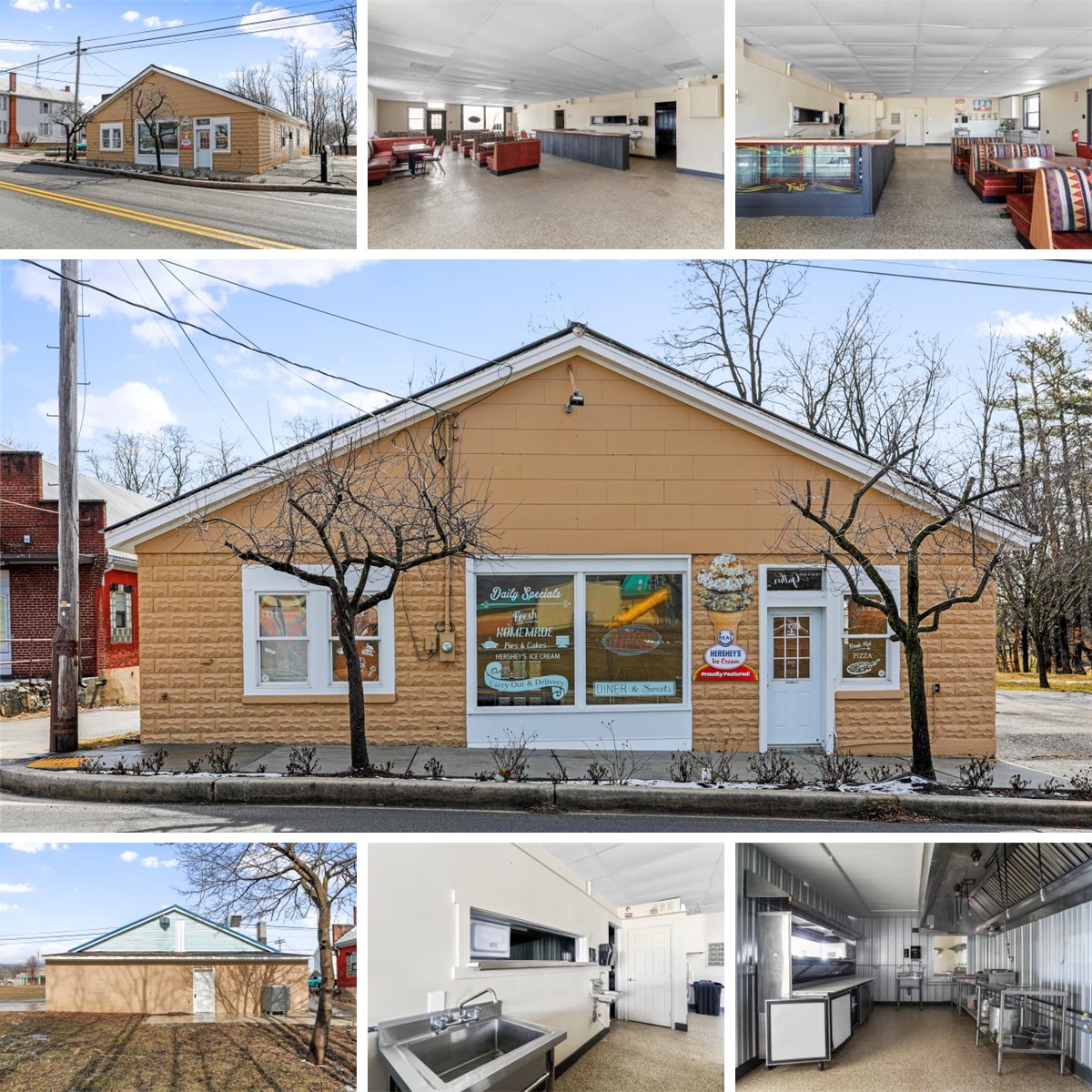Outstanding Opportunity in Clear Spring, MD! Seize the chance to own a prime 1.55-acre corner lot property situated directly across from Clear Spring Schools and adjacent to local baseball fields and a sports park. This one-level, 2,440 square foot building, previously operated as a popular restaurant and ice cream shop. The property comes fully equipped with all necessary kitchen appliances and dining furniture, making it turnkey for culinary ventures or adaptable to other business needs. Recent upgrades include new epoxy flooring, HVAC system, fresh paint, and renovated bathroom. Strategically located just minutes off I-70 and less than 7 miles from Whitetail Mountain Resort, the property benefits from significant exposure due to its high-traffic location and ample parking space, ensuring convenience for both staff and customers. Washington County has this in RT zoning. Buyers to confirm with county all potential uses.